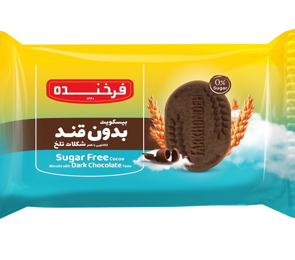 بیسکویت خوشین بدون قندکاکائویی با طعم شکلات تلخ فرخنده